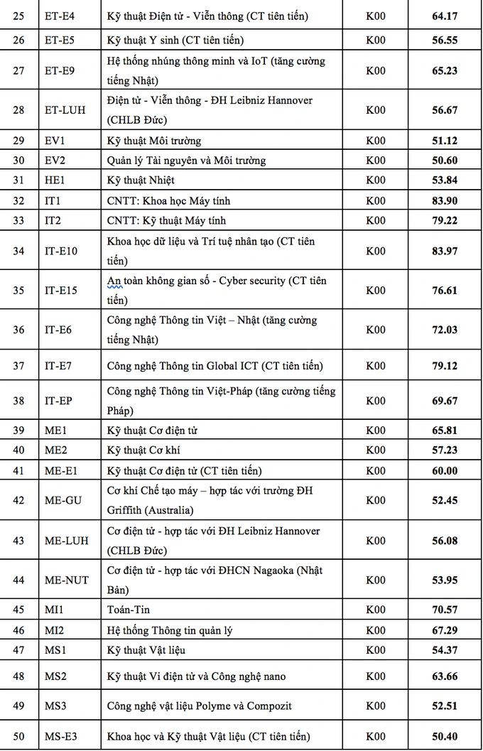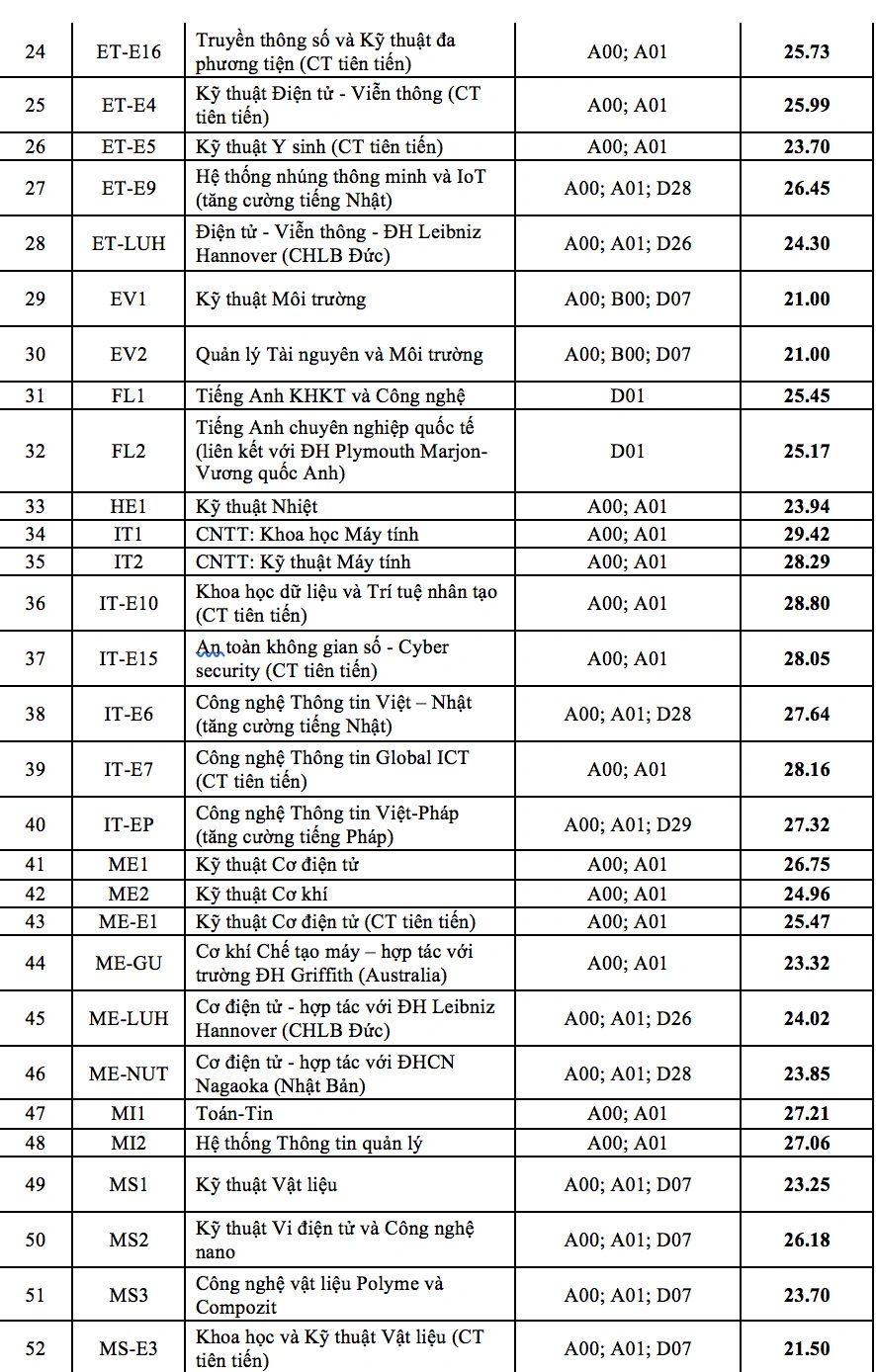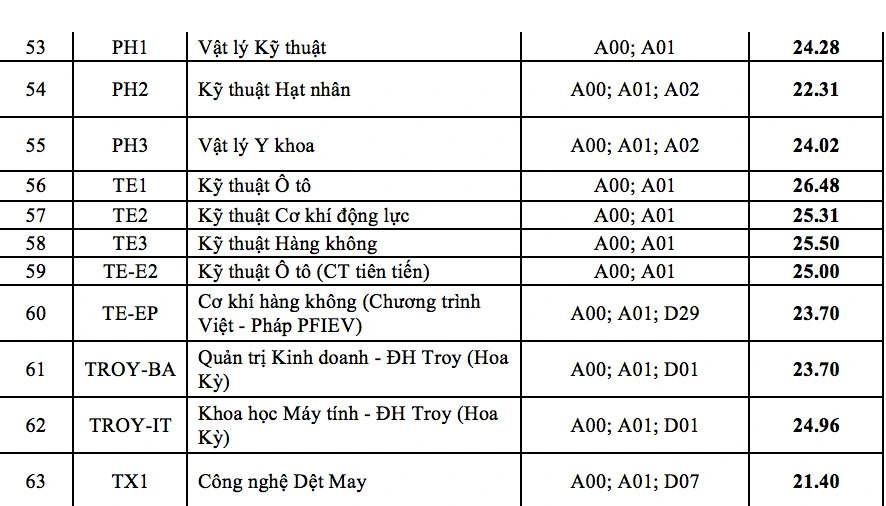 Điểm chuẩn theo điểm thi tốt nghiệp của Đại học Bách khoa Hà Nội năm 2023: