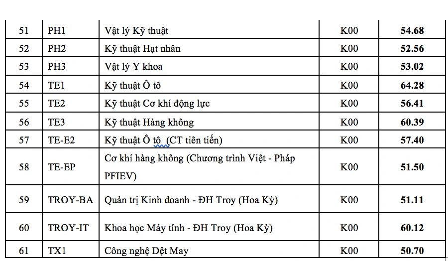 Đại học Bách khoa Hà Nội lưu ý, điểm chuẩn được xác định dựa trên điểm xét (ĐX) như sau:
