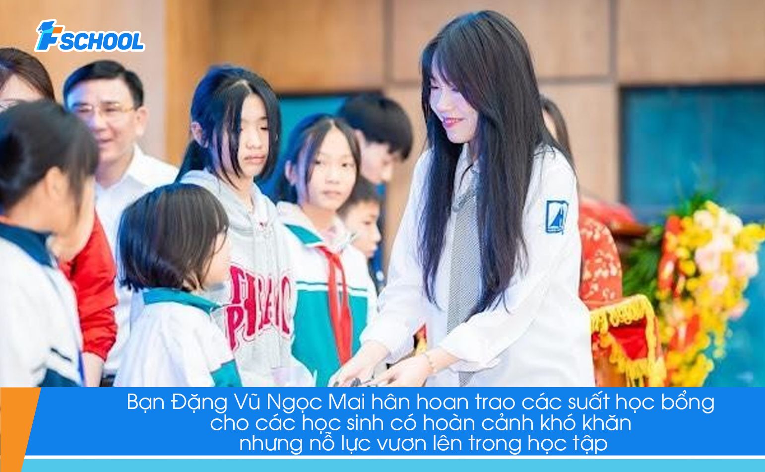 Thông qua Hội Khuyến học Việt Nam, hai bạn Đặng Vũ Ngọc Mai và Đặng Vũ Hà Châu đã trao tặng 200 suất học bổng trị giá 200 triệu đồng để sẻ chia, hỗ trợ cho các bạn học sinh và thầy cô giáo trường Nguyễn Đình Chiểu, Thành phố Hà Nội.