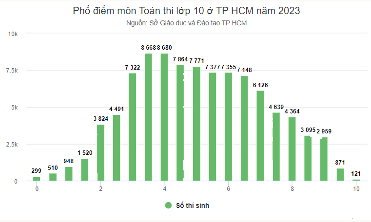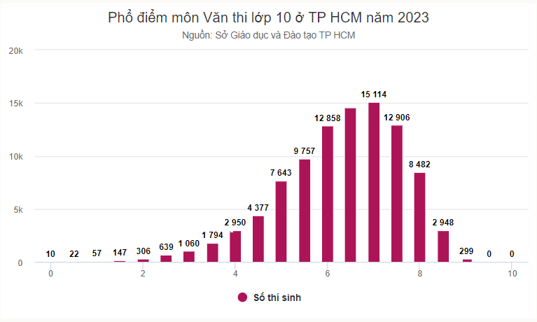 Năm nay, trong số gần 96.000 thí sinh dự thi, khoảng 77.300 em sẽ trúng tuyển (80%). Nhiều giáo viên nhận định điểm chuẩn lớp 10 của TP HCM năm nay có thể trên 25 điểm với trường top đầu, 16-22 điểm với các trường top giữa và trên 11 điểm với các trường ở ngoại thành. Mức này tăng 0,5-1 điểm so với năm ngoái.