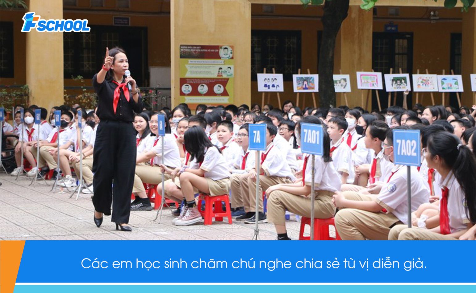 Tại đây, chuyên gia Tâm lý giáo dục Nguyễn Lệ Thủy đến từ Báo Thiếu niên tiền phong và Nhi đồng đã chia sẻ một số câu chuyện thực tế về bạo lực học đường (BLHĐ). Các em học sinh được hiểu về khái niệm cũng như các dạng thức của BLHĐ. Trong môi trường học đường, không hiếm gặp những tình huống tiềm ẩn nguy cơ BLHĐ như: Bắt nạt, trêu ghẹo bạn một cách quá đà; tung tin đồn hoặc buông lời thách thức bạn về một việc gì đó... đều dễ khiến đối phương bị tổn thương, thậm chí dẫn đến hậu quả tiêu cực.
