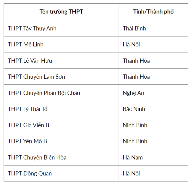 Top 10 thí sinh điểm cao nhất đến từ 10 trường THPT như sau: