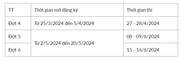 Thí sinh muốn đăng ký tham dự các đợt thi TSA cần lưu ý lịch đăng ký dự thi dự kiến của các đợt thi TSA2024 tiếp theo: