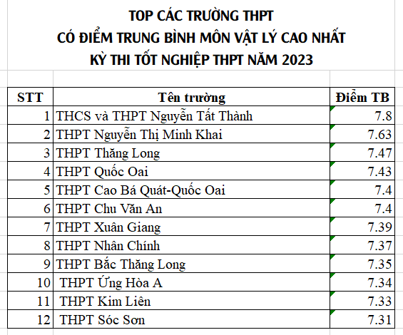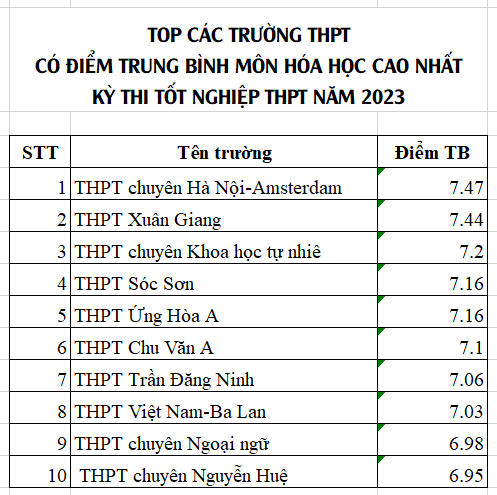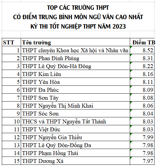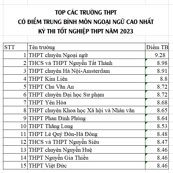 Sở GD-ĐT Hà Nội vừa thống kê top các trường THPT có điểm trung bình từng môn cao nhất trong kỳ thi tốt nghiệp THPT năm 2023.